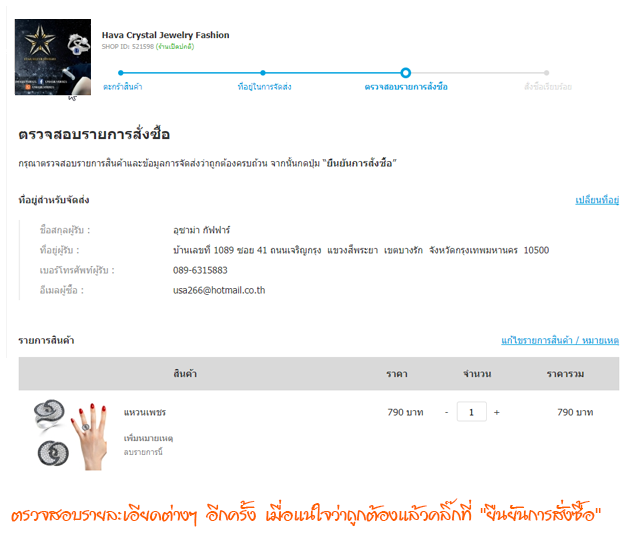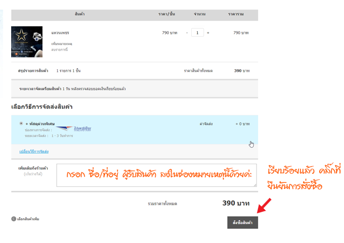 หลังจากท่านเลือกสินค้าและกดสั่งซื้อสินค้าไปแล้วนั้น